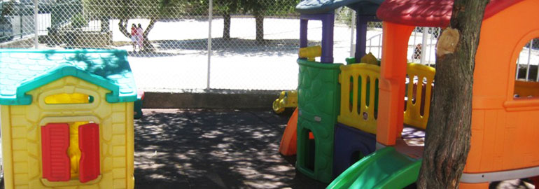 Existem dois espaços no exterior, um deles com zona arborizada, podendo beneficiar-se de sombra para as crianças brincarem, apetrechados com equipamentos lúdico-motor. O outro espaço com um anfiteatro.
